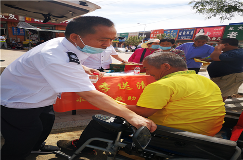 为宣传贯彻救助管理政策法规,传递救助工作正能量,倡导动员社会力量主动参与救助管理工作,营造全社会关心、帮助流浪乞讨人员的良好氛围,永吉县救助管理站于2020年7月至9月在全县各乡镇开展“爱心传递、夏季送清凉”救助宣传活动。 目前,救助管理站已先后在北大湖镇、西阳镇、万昌镇、双河镇等乡镇开展夏季送清凉宣传活动。活动中,工作人员为老人、环卫工人发放凉帽、毛巾、矿泉水等物品,为他们消暑降温。并通过发放宣传单、现场政策讲解等形式,积极宣传国家救助政策,让人民群众进一步了解国家救助法规、救助原则、救助流程等知识,提高救助管理工作知晓率。 通过此次专项宣传活动,切实让群众感受到党和政府“以民为本、为民解困、为民服务”的理念,让流浪乞讨及困境人员感受到关怀与温暖。 永吉县救助管理站提醒广大人民群众,在街头、广场、商业区等人流量大的地方发现流浪乞讨人员请及时拨打110报警电话,或者与永吉县救助管理站联系。24小时值班电话:64221122。 、
