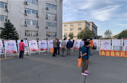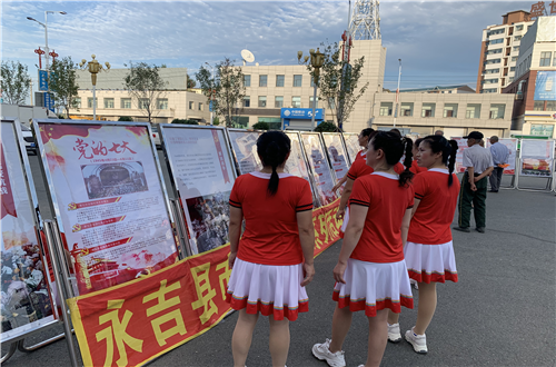 2020年在第七届“市民文化节”活动期间,永吉县图书馆开展以“永远跟党走”为主题的大型图片巡回展。此次展览进一步推广了免费开放服务,增强县内广大群众的精神文化生活,让更多群众享受到公共文化服务权益。 8月25日首场巡展走进开发区广场,吸引了千余名群众前来驻足观看。本次展览以党的历次代表大会为主题,共有31块展板,以党的历史发展脉络为主线,带领广大群众回顾了从党的一大到十九大以来的中国共产党史。前来观看展览的群众通过展览可以在历史的角度上全面认识中国共产党,学习到我党是用马克思列宁主义武装起来的,是富有革命创造精神的党;是密切联系群众,为中国各族人民的根本利益不断奋斗并作出最大牺牲的党。 永吉县图书馆在“市民文化节”活动期间将走进乡镇、社区、广场、农村、学校等地进行巡展,让更多的市民享受到公共文化服务。